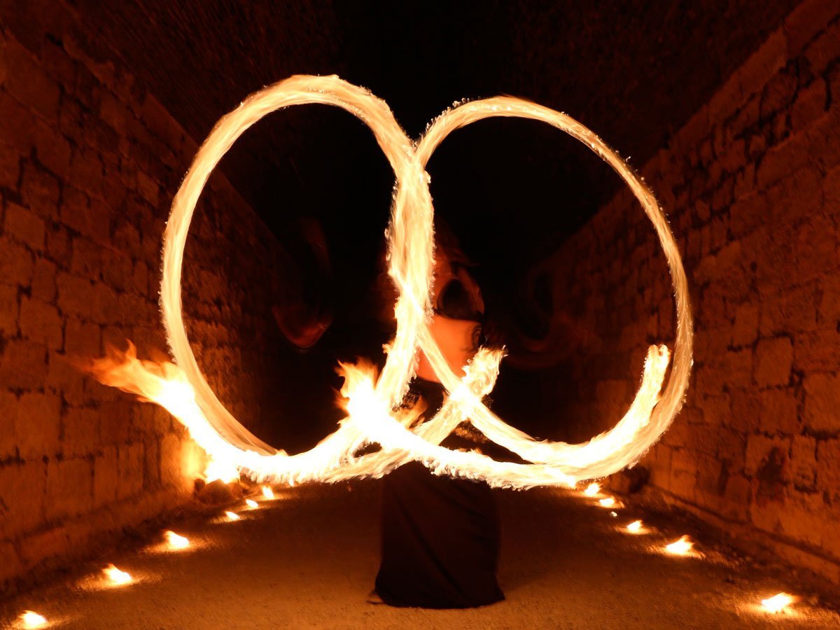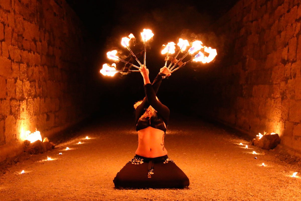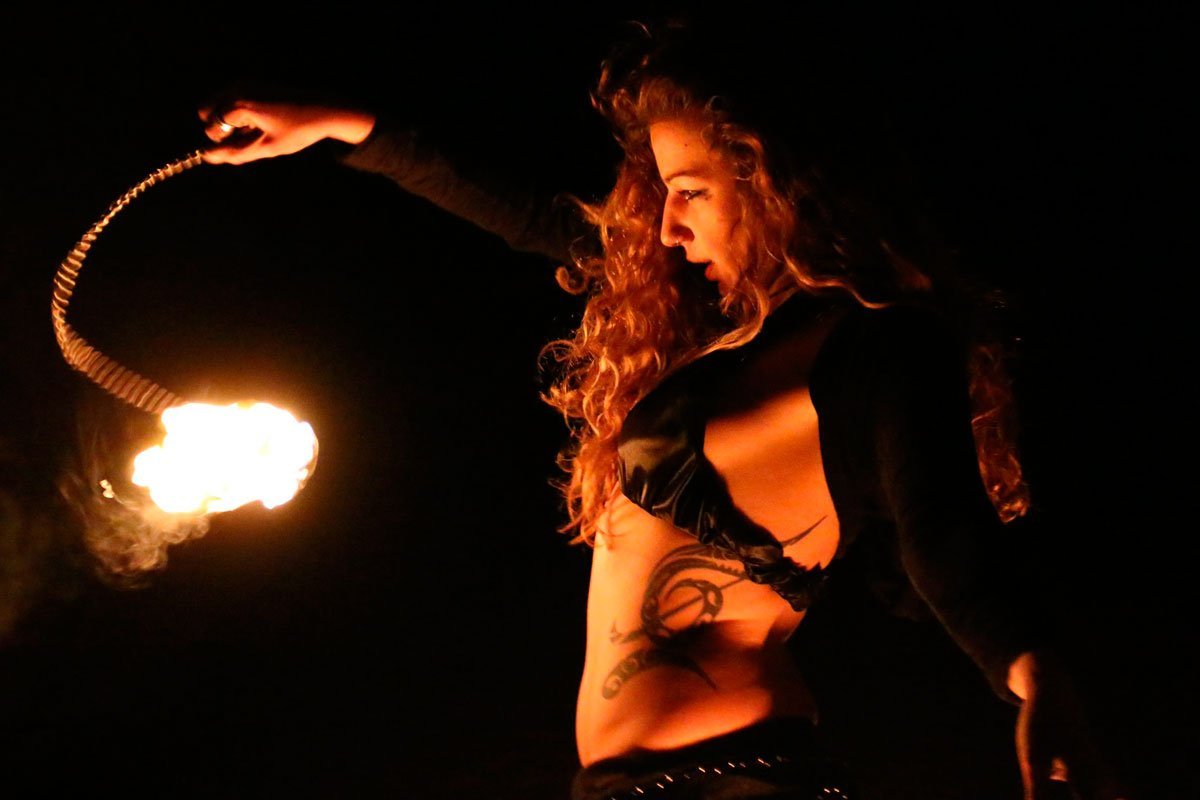 Comienza el ritual en la noche, cuando el sol se oculta y suavemente ilumina a la luna. Entonces las llamas son acompañadas con la danza tribal,y es ahí donde aparece nuestro respeto y admiración por el fuego, donde somos una tribu salvaje, donde el fuego y el pueblo, no serán domados nunca.
