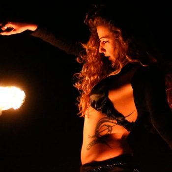 Comienza el ritual en la noche, cuando el sol se oculta y suavemente ilumina a la luna. Entonces las llamas son acompañadas con la danza tribal,y es ahí donde aparece nuestro respeto y admiración por el fuego, donde somos una tribu salvaje, donde el fuego y el pueblo, no serán domados nunca.